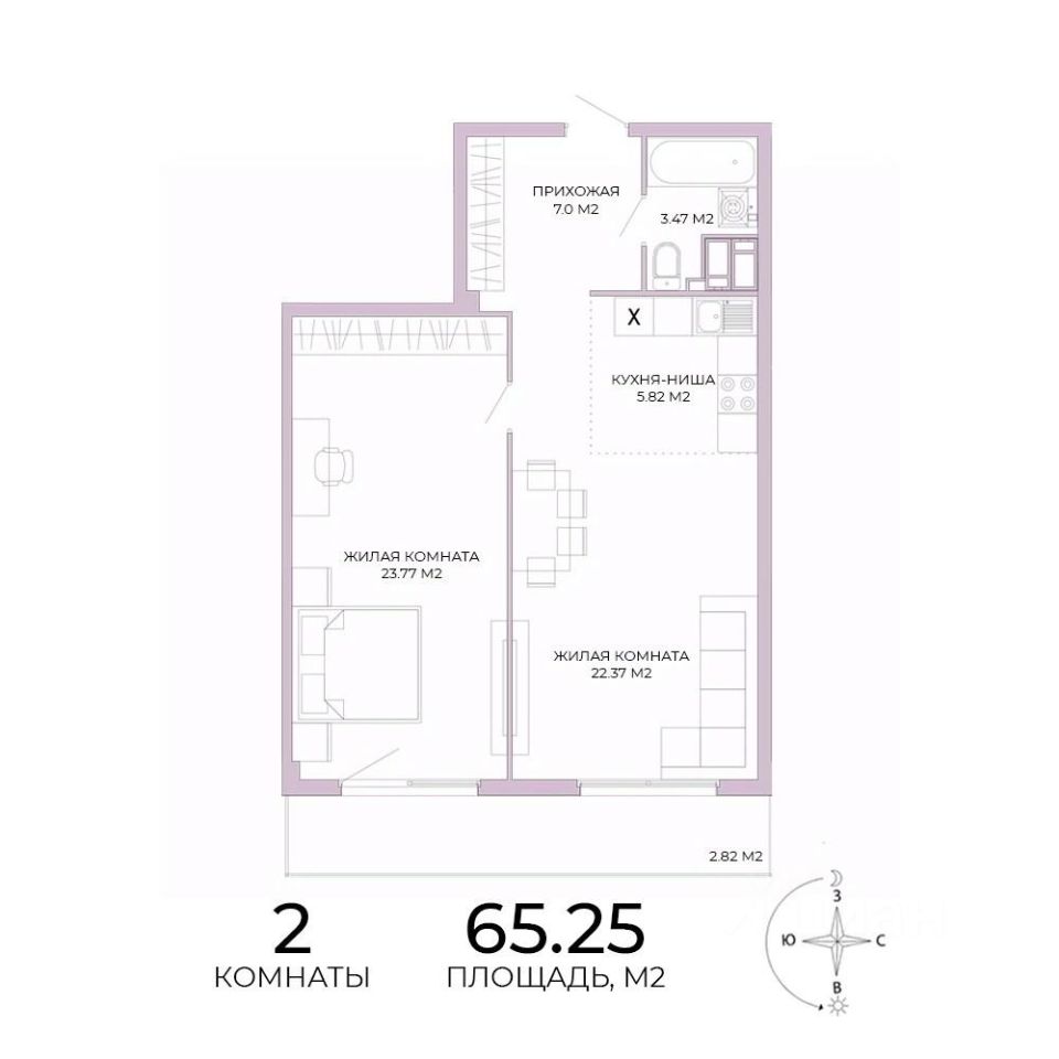 Продаётся 2-комнатная квартира в строящемся доме (дом 18), срок сдачи: IV-кв. 2025, общей площадью 65.25 кв.м., на 5 этаже. Дизайнерская отделка.
