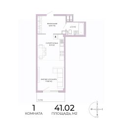 Продаётся 1-комнатная квартира в строящемся доме (дом 18), срок сдачи: IV-кв. 2025, общей площадью 41.02 кв.м., на 5 этаже. Дизайнерская отделка.