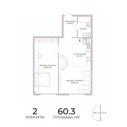 Продаётся 2-комнатная квартира в строящемся доме (дом 18), срок сдачи: IV-кв. 2025, общей площадью 60.3 кв.м., на 5 этаже. Дизайнерская отделка.