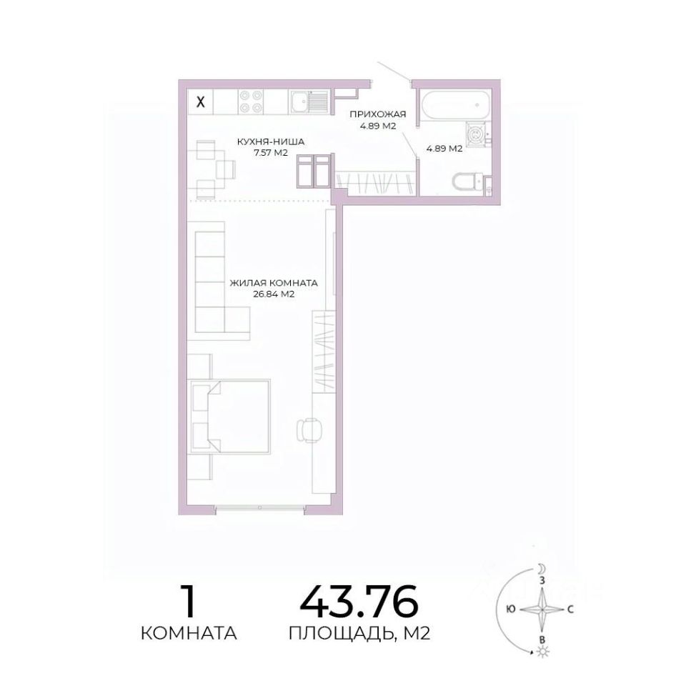 Продаётся 1-комнатная квартира в строящемся доме (дом 18), срок сдачи: IV-кв. 2025, общей площадью 43.76 кв.м., на 5 этаже. Дизайнерская отделка.