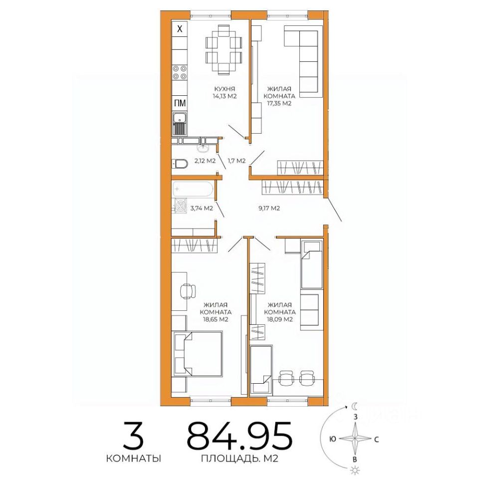 Продаётся 3-комнатная квартира в сданном доме (дом 10), срок сдачи: IV-кв. 2024, общей площадью 84.95 кв.м., на 8 этаже. Дизайнерская отделка.