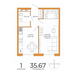 Продаётся 1-комнатная квартира в сданном доме (дом 10), срок сдачи: IV-кв. 2024, общей площадью 35.67 кв.м., на 3 этаже. Дизайнерская отделка.