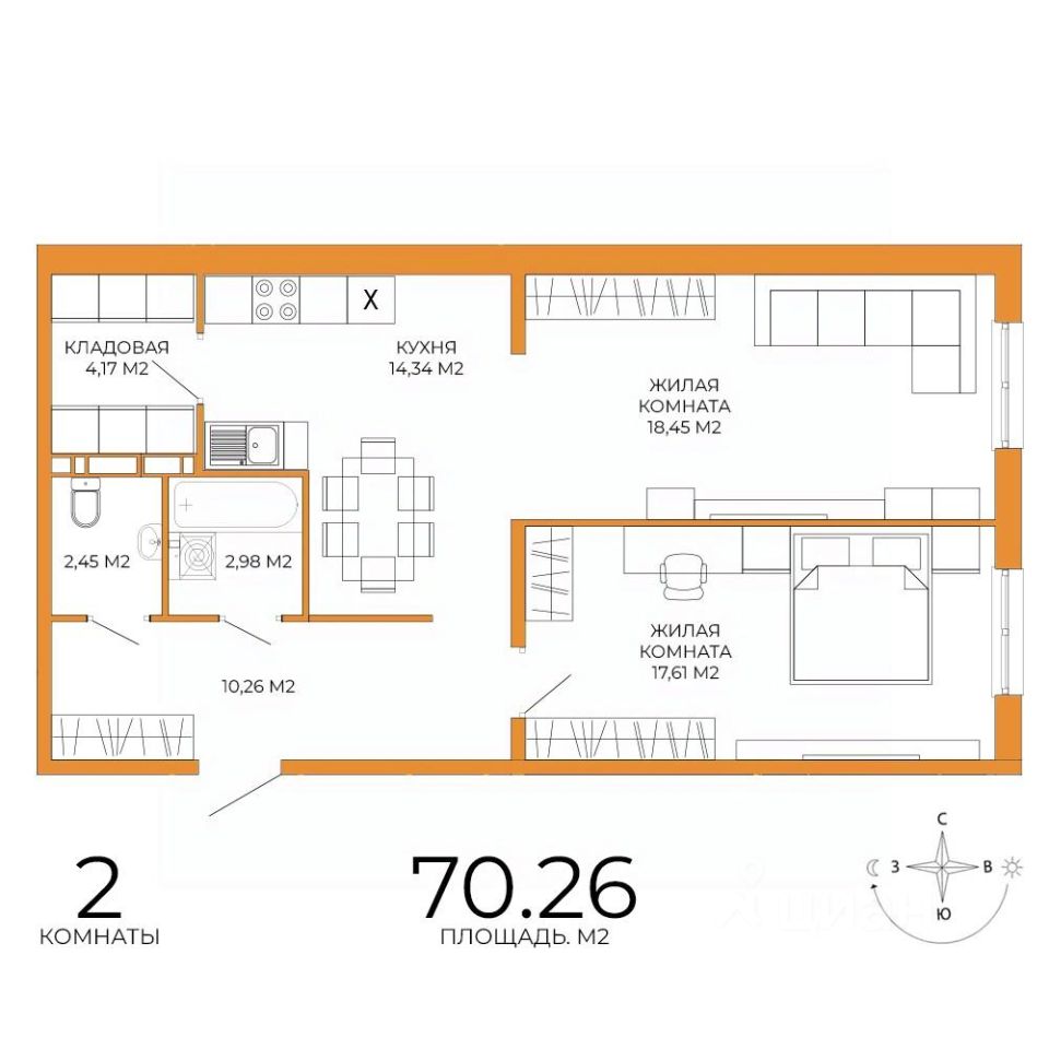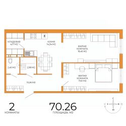 Продаётся 2-комнатная квартира в сданном доме (дом 10), срок сдачи: IV-кв. 2024, общей площадью 70.26 кв.м., на 6 этаже. Дизайнерская отделка.