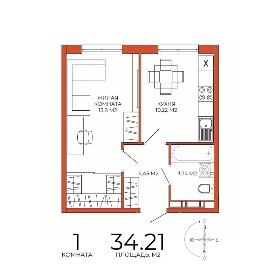 Продаётся 1-комнатная квартира в сданном доме (дом 8), срок сдачи: III-кв. 2025, общей площадью 34.21 кв.м., на 18 этаже. Дизайнерская отделка.