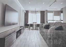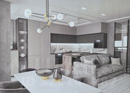 В квартире функциональная планировка, при входе имеется гостевой санузел, большая кухня-гостиная с панорамными окнами и кофейной зоной, 3 изолированных спальни, большой санузел (7,7кв.м.), гардеробная (3,5кв.м.), ниша под шкаф, 2 балкона.