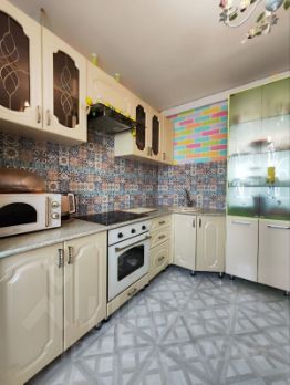 Новым собственникам остается кухонный гарнитур со встроенной техникой.
