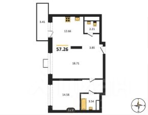 Высота потолков — 2,7 м.