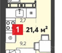 Площадь 21,4 кв. м. с лоджией.