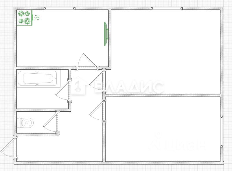 Две изолированные комнаты с площадью 14,8 кв. м и 11,7 кв. м соответственно. Окна выходят на улицу.
