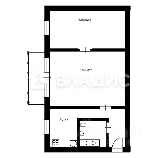 Общая площадь 42,2 кв. м, из которых 22 кв. м — жилая площадь. Две комнаты изолированы, каждая по 11 кв. м. Высота потолков — 2,48 м. Есть балкон, а также совмещённый санузел.