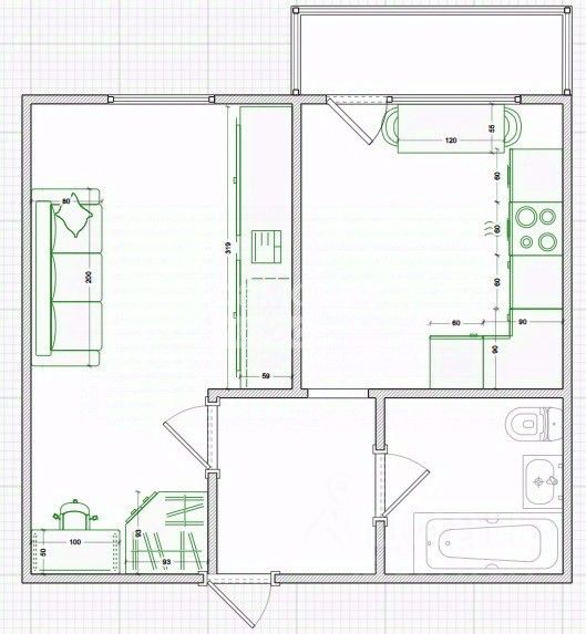 Общая площадь 36.5 кв.м. (с учетом лоджии)