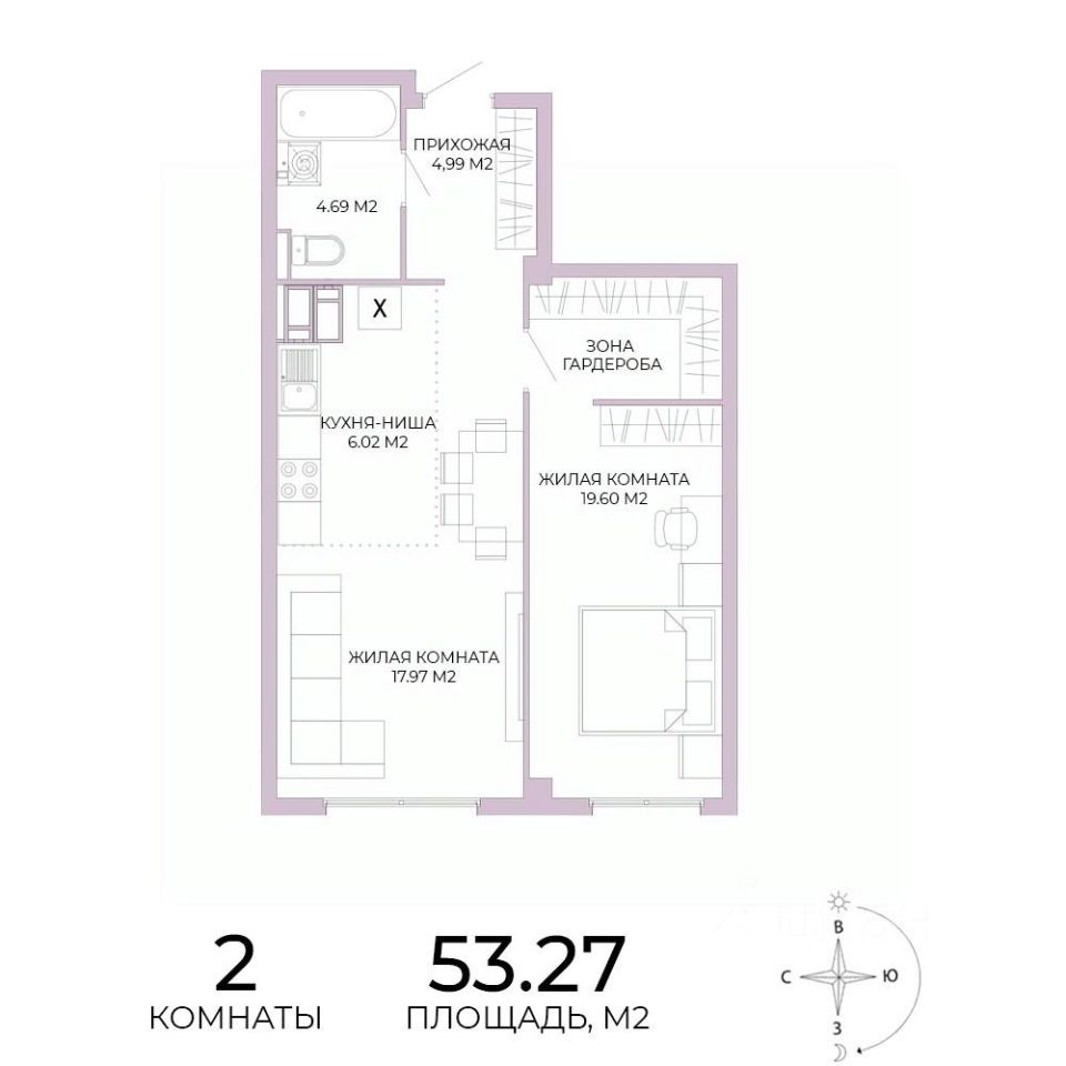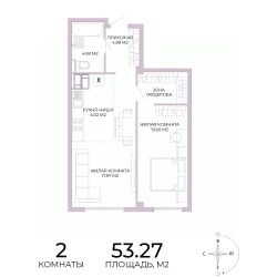 Продаётся 2-комнатная квартира в строящемся доме (дом 17), срок сдачи: IV-кв. 2025, общей площадью 53.27 кв.м., на 13 этаже. Дизайнерская отделка.