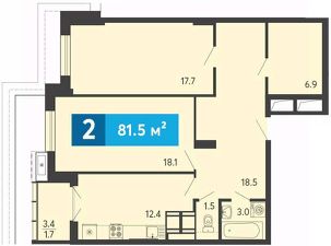 Двухкомнатная квартира от застройщика с предчистовой отделкой в ЖК "Созвездие" на 2 этаже. Общая площадь: 81.5 кв.м., жилая: 35.8 кв.м., площадь просторной кухни-столовой: 12.4 кв.м. Комнаты изолированные, все окна выходят на одну сторону. В квартире одна лоджия, один раздельный санузел. Высота потолков 2.7 м.