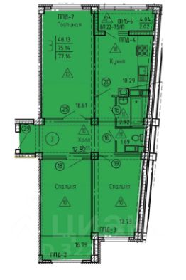 общая площадь 74.8 кв. м + 4.04 кв. м лоджия