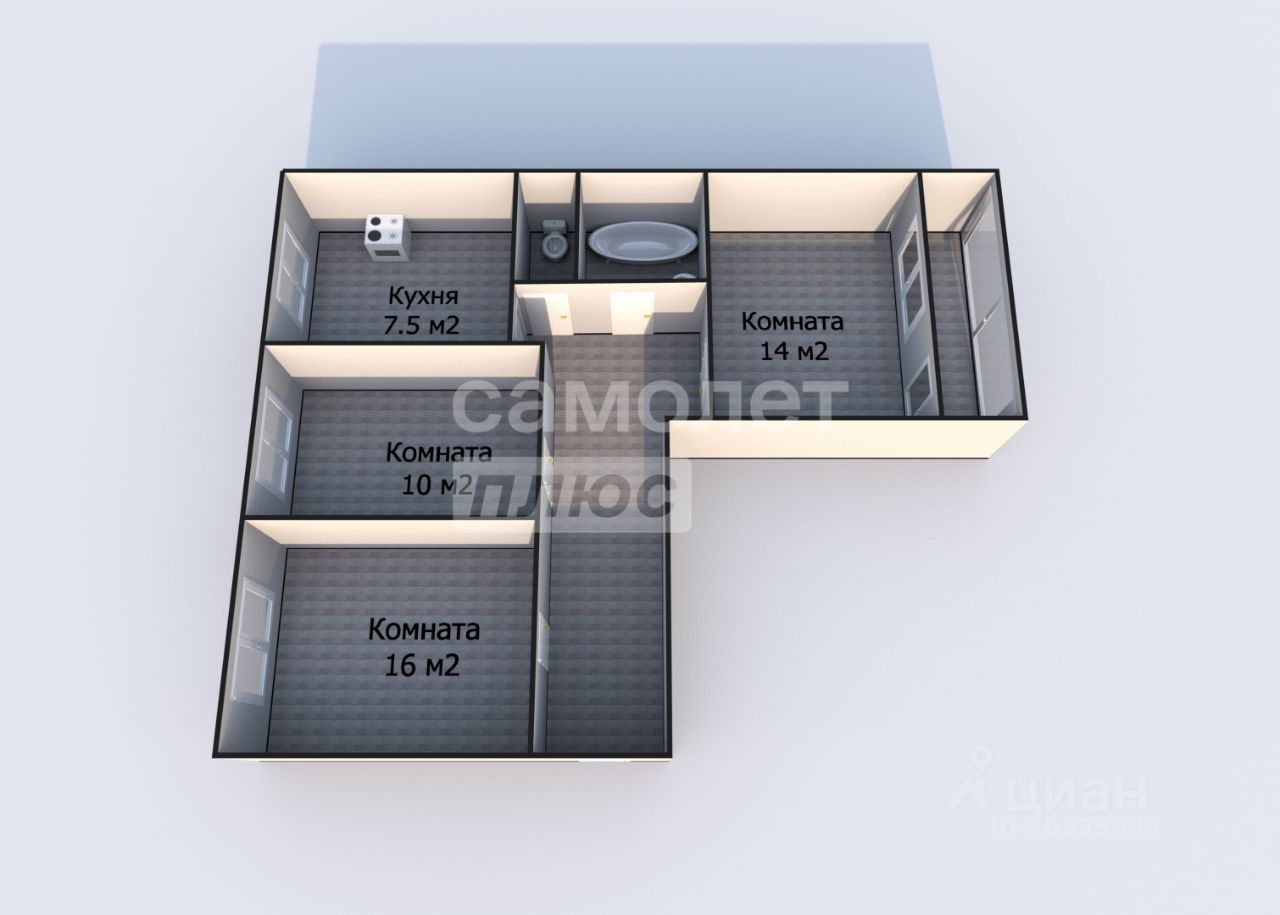 Общая площадь квартиры составляет 68.5 кв. м, из которых 16 кв. м. занимает комната 1, комната 2 - 14 кв.м, комната 3 - 10 кв.м, а кухня площадью 7,5 кв.м. станет идеальным местом для приготовления вкусных блюд и семейных ужинов.