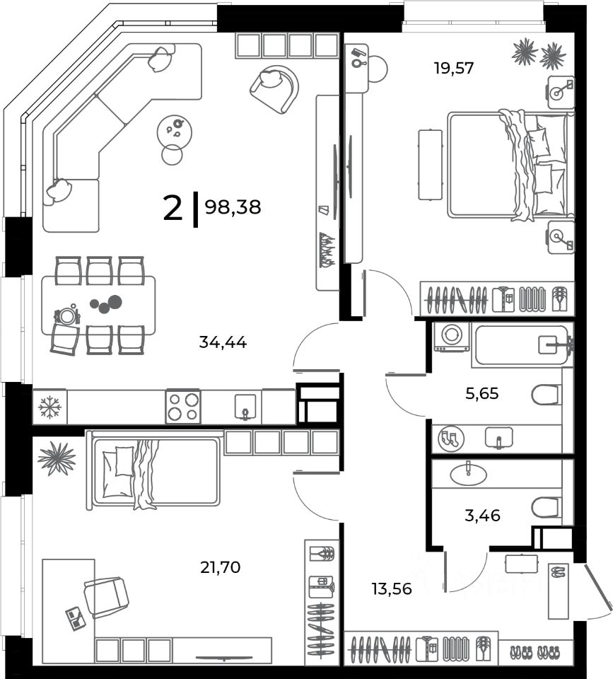 Продаётся 2-комнатная квартира в строящемся доме (Корпус 1), срок сдачи: IV-кв. 2026, общей площадью 98.38 кв.м., на 2 этаже. Новый жилой комплекс "Клубный дом my MAISON" от застройщика "Dewell group" расположен по адресу Россия, Пензенская область, Заречный, Братская улица, 8.