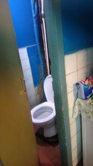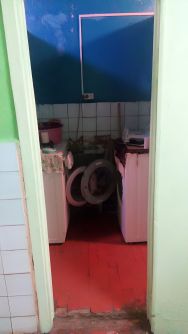 Машинка-автомат не новая, но стирает. Есть закрепленное место для ее установки в умывальнике.