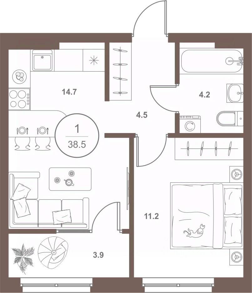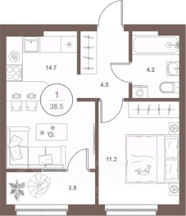 Общая площадь38 м²