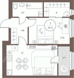Общая площадь46,2 м²