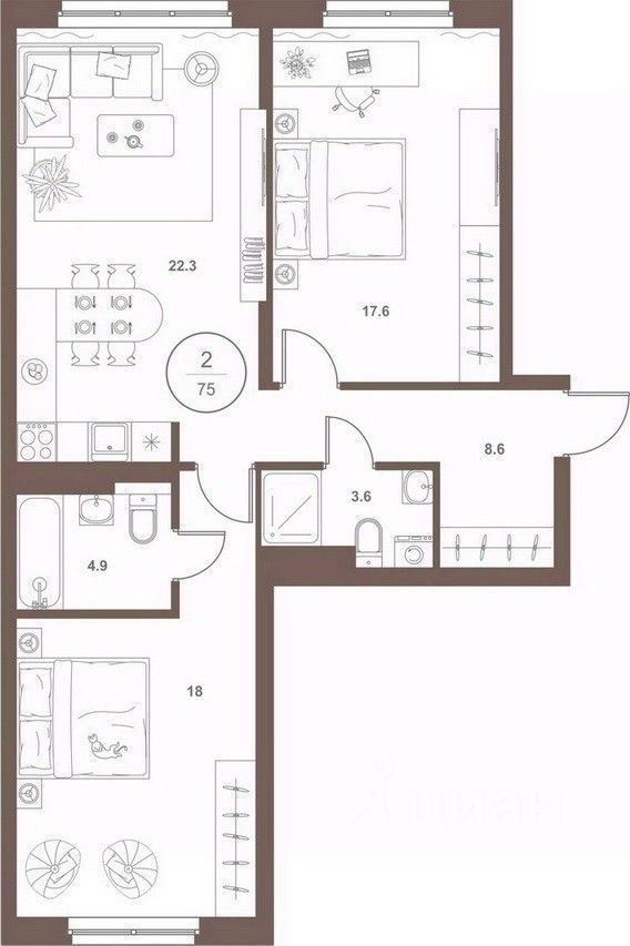 Общая площадь74,3 м²