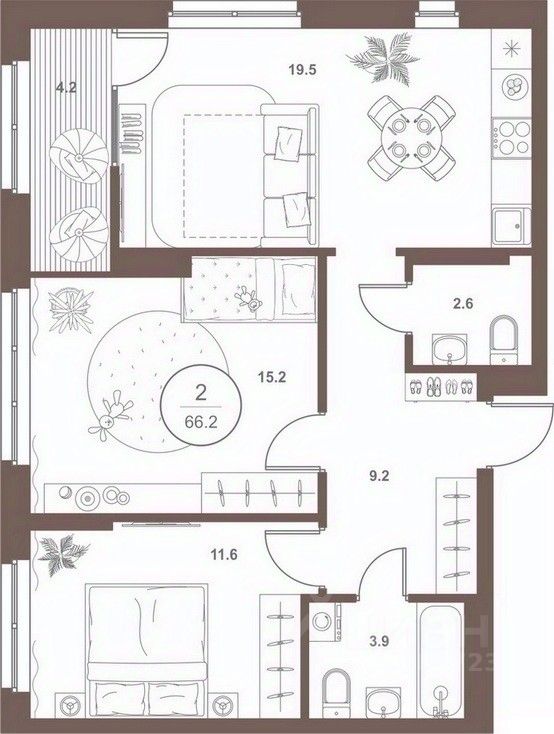 Общая площадь66,2 м²