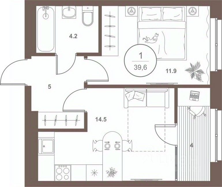 Жилая площадь11,9 м²