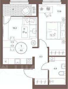 Общая площадь44 м²