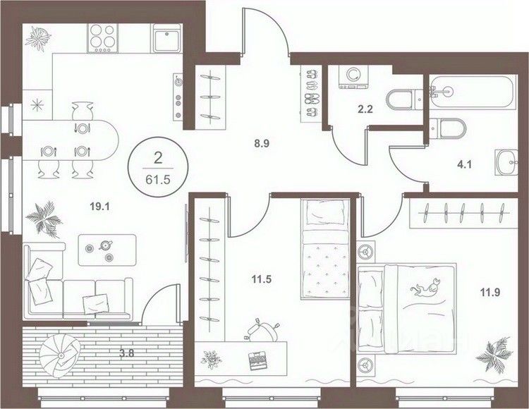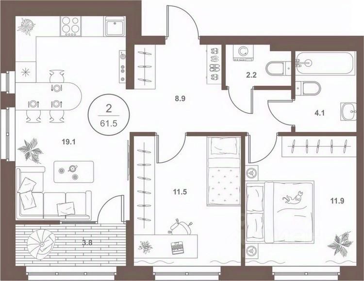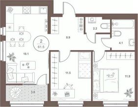 Общая площадь61,4 м²