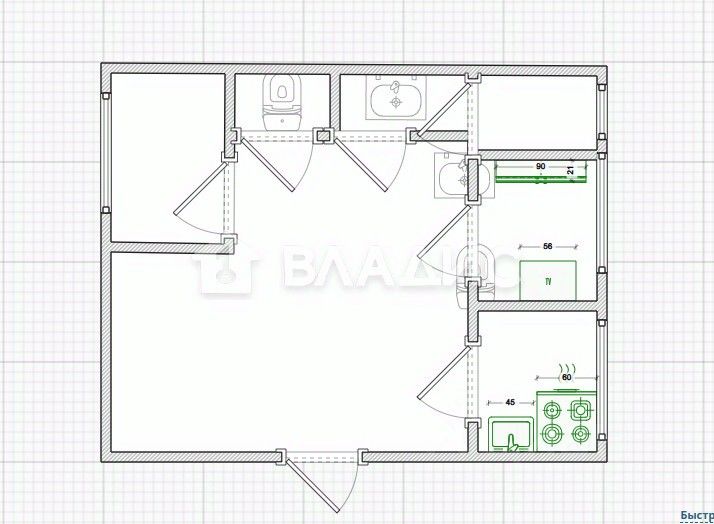 Общая площадь квартиры: 60,4 кв м ( без учета лоджии )