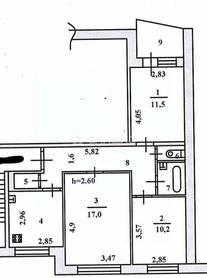 Площадь застекленной и утепленной лоджии: 4.9 кв.м.