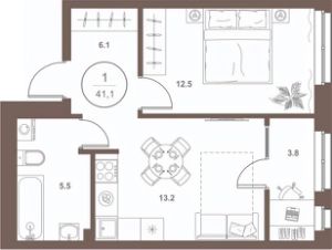 Общая площадь41,1 м²