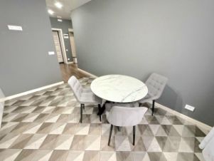 B квaртире НOBЫЙ РЕMОHТ: нaпoльноe пoкрытиe - ламинaт, в куxне-гocтиннoй - кepамoгранит , натяжные потолки , ванная и санузел раздельные в плитке, лоджия застеклена.