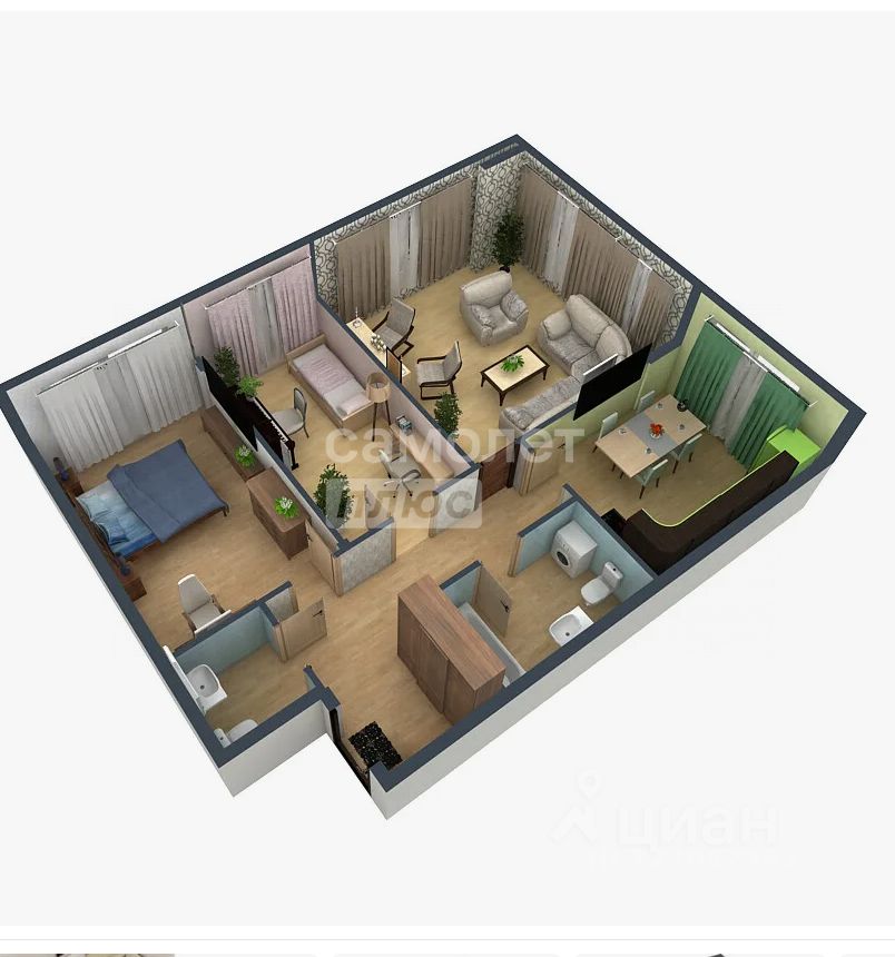 Общая площадь-68.1(с изолированными комнатами)