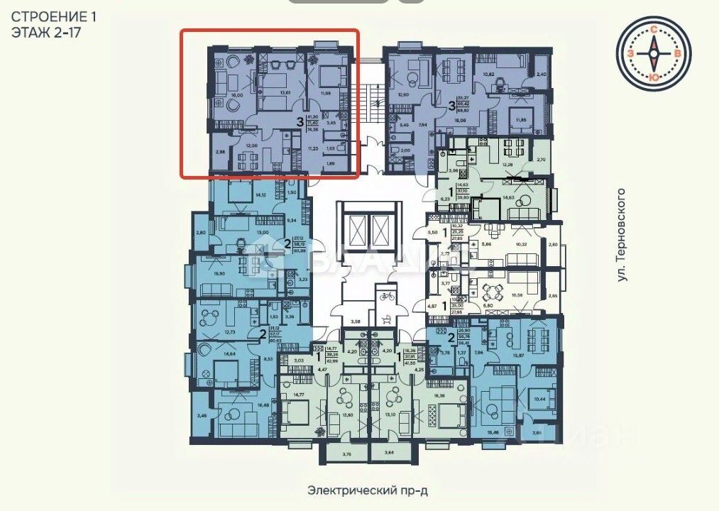 Kвapтира расположена нa 14 этажe 17 этажного дома(материал стен монолит+газоблок).
