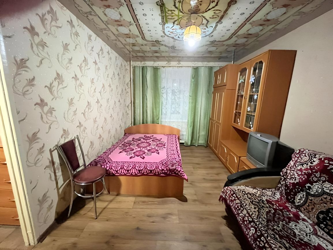 В хорошем жилом состоянии. Установлены пластиковые окна, балкон застеклен, на полу линолеум, потолки навесные. В квартире остается: кухонный гарнитур, диван, кровать, стенка.
