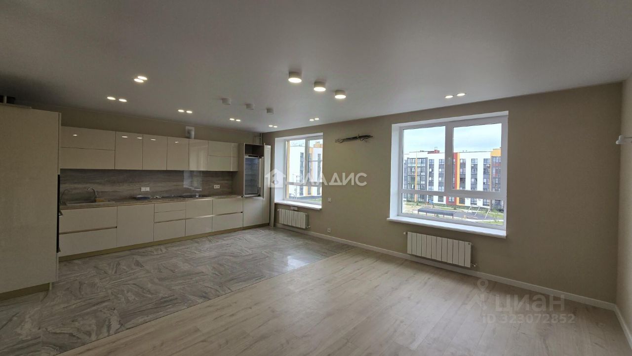 Кухня-гостинная 35 кв. м. Высота потолков — 2,7 м.