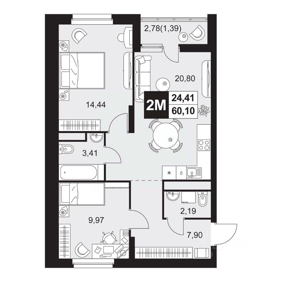 Общая площадь60,1 м²