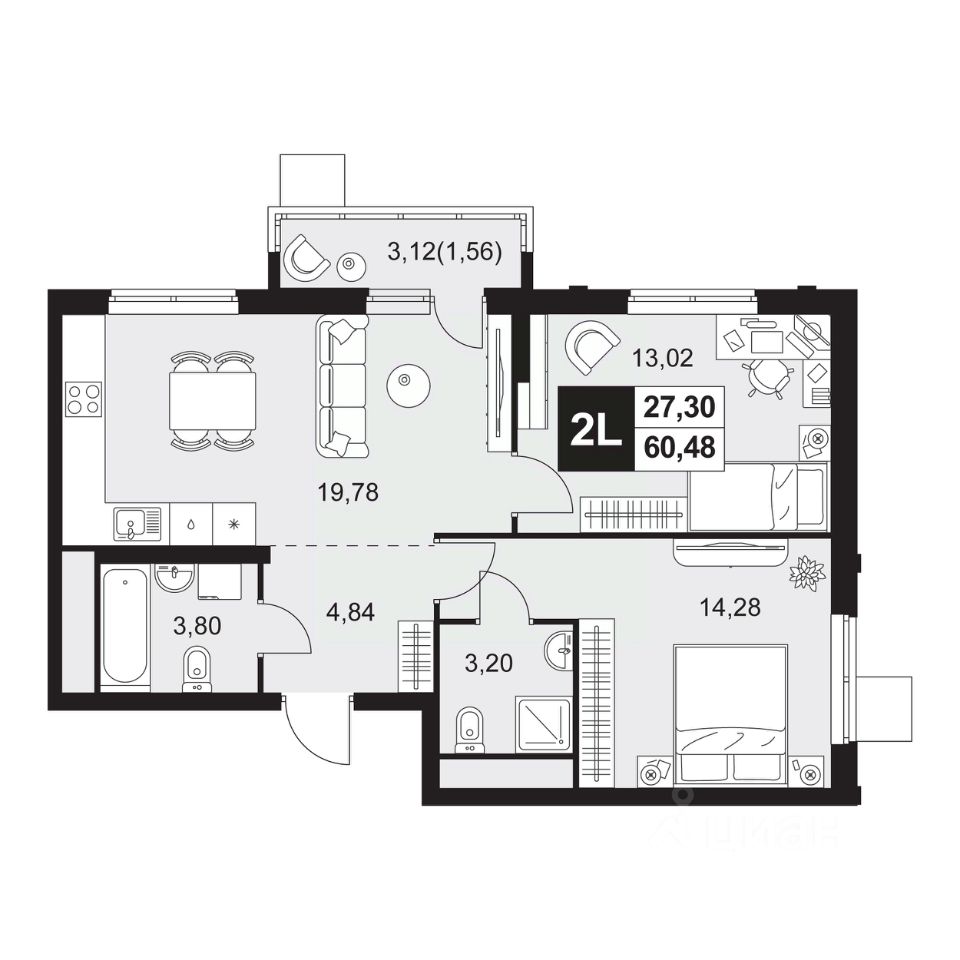 Общая площадь60,48 м²