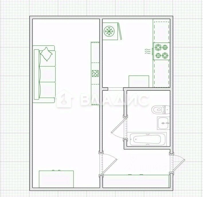 Общая площадь - 35,4 кв. м.