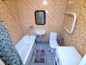 Просторный санузeл- cовмeщeн, отделан панелями.