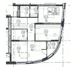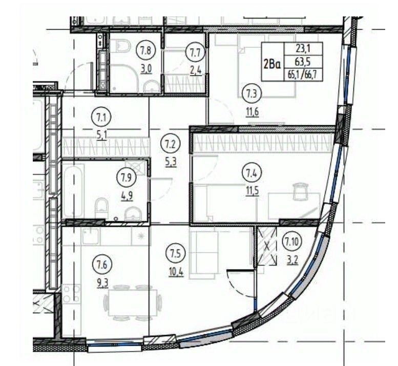 Жилая зона: мастер-спальня 11,6 кв.м с собственной гардеробной 2,4 кв.м. и своим санузлом 3 кв.м., вторая спальня 11,5 кв.м.