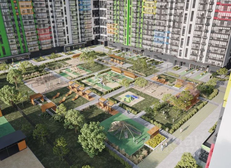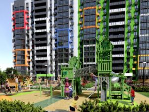 Двор комплекса без машин, огороженная территория с современной детской площадкой и зоной отдыха. Вход без ступеней. Корзины для кондиционеров. Для детей всех возрастов установлено большое количество игровых площадок. Продумана тихая зона, крытые деревянные беседки.