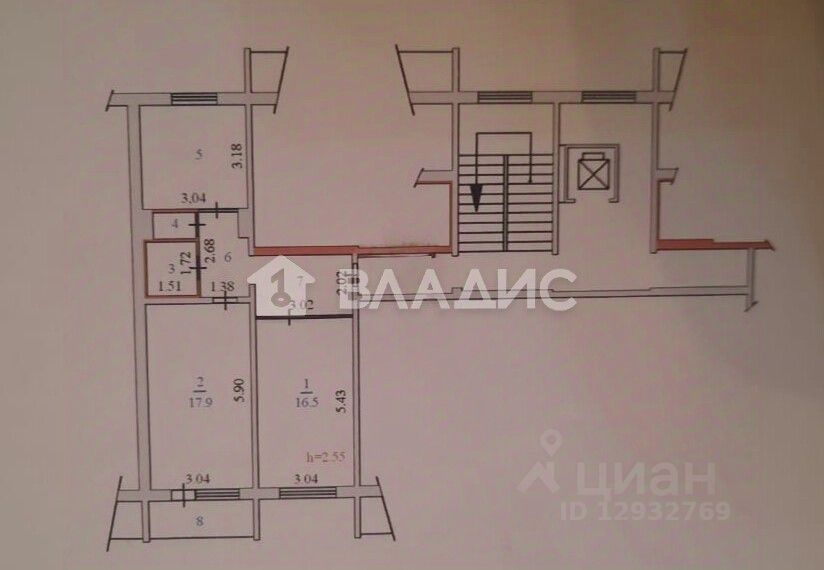 Площадь комнат: 17,9 кв. м и 16,5 кв. м.