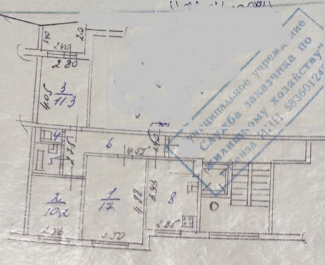 Жилая площадь 10,2 м2 + 11,3 м2 + 17,0 м2.