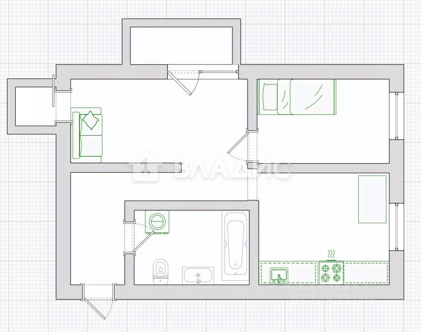 В квартире сделан косметический ремонт, так что новый владелец сможет сразу заселиться или внести свои изменения по вкусу. Жилое пространство разделено на 2 полноценные комнаты с окнами и спальными местами.