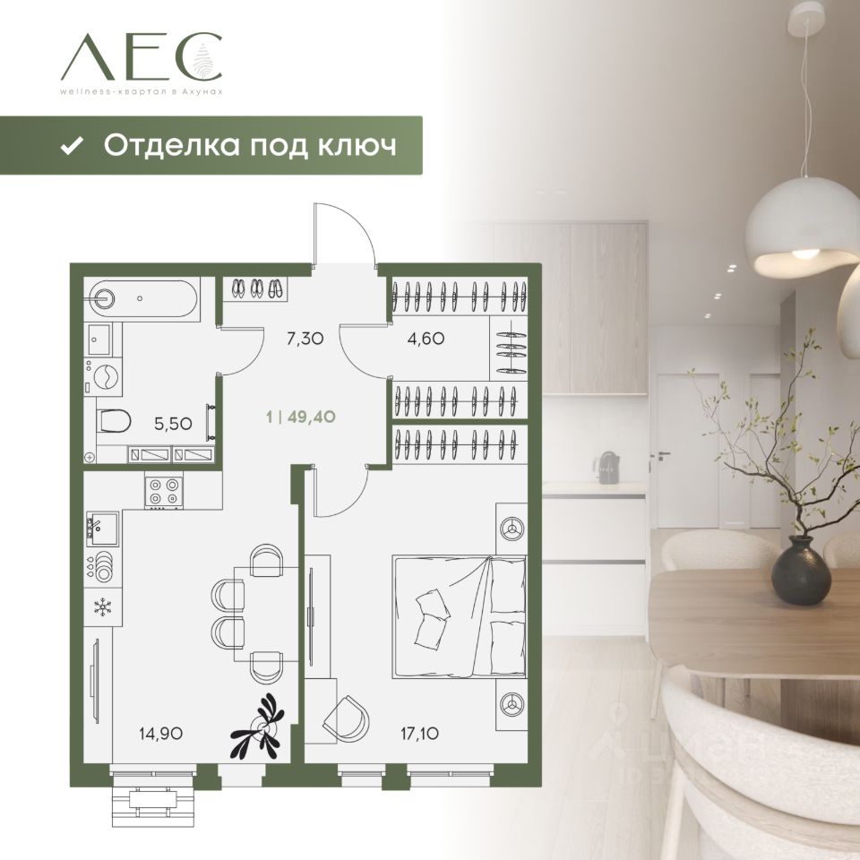 Квартиры с отделкой "ПОД КЛЮЧ" СТАРТ ПРОДАЖ! Малоквартирные 5-этажные дома повышенного комфорта. Все квартиры сдаются с полноценной WELL-отделкой. Вкаждой секции лифт, который спускается в подземный паркинг. Отделка "под ключ" — ваше время и бюджет сэкономлены: Комфорт: Тёплые полы в санузлах и инсталлиция вместо унитаза Подключите технику легко: Выводы и розетки для посудомоечной и стиральной машины, дренаж для кондиционера, internet-розетка Стиль без доплат: Дизайнерские черные розетки, светлые тона ламината 33 класса, керамогранит и закладные под гардеробные и люстры. Почему это выгодно? -Отделка уже в ипотеке! Никаких доплат, шума и пыли после новоселья. Больше не нужно: Искать строителей Выбирать материалы Волноваться о проводке Можно сразу: Заселяться Расставлять мебель Наслаждаться жизнью Ваш новый образ жизни в wellness-квартале: Собственный лесной парк с зонами для йоги и пикников. Безопасный двор без машин, где гуляют дети и катаются на велосипедах. Вся инфраструктура (школы, сады, спорт, кафе) — в комфортной доступности. Лучшие условия на старте продаж 2-й очереди: Ипотека от 4,6% Рассрочка 0% до конца строительства TRADE-IN (обменяйте старую квартиру) Первоначальный взнос — от 1 000 000 ₽ Скидка 2000 ₽ с квадратного метра при покупке за наличные Выбирайте квартиру своей мечты с готовым ремонтом по выгодной стартовой цене*! Нажмите "Позвонить", чтобы узнать, какие планировки еще свободны, и получить полную информации по отделке! Убедитесь, как много мы сделали для вашего комфорта. * стоимость актуальна на момент размещения