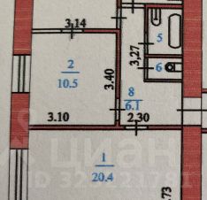 -общая площадь 60 кв.м.; жилые 20,4+10,5+12 кв.м, кухня 6,5 кв. м.;