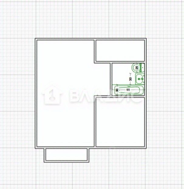 Общая площадь 30,2 кв. м, из них 6 кв. м — кухня.