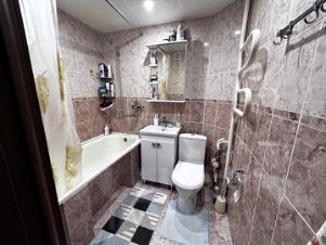 Современный ремонт: Стильные натяжные потолки, новая сантехника, чистая отделка.