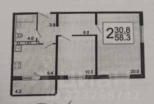 Продается уютная двухкомнатная квартира в современном доме 2015 года постройки. Общая площадь — 58.3 кв. м, жилая — 30.8 кв. м, кухня — 9.4 кв. м. Квартира расположена на 11 этаже 16-этажного панельного дома. Высота потолков составляет 2.7 метра, а окна выходят на улицу, что обеспечивает хорошее естественное освещение.